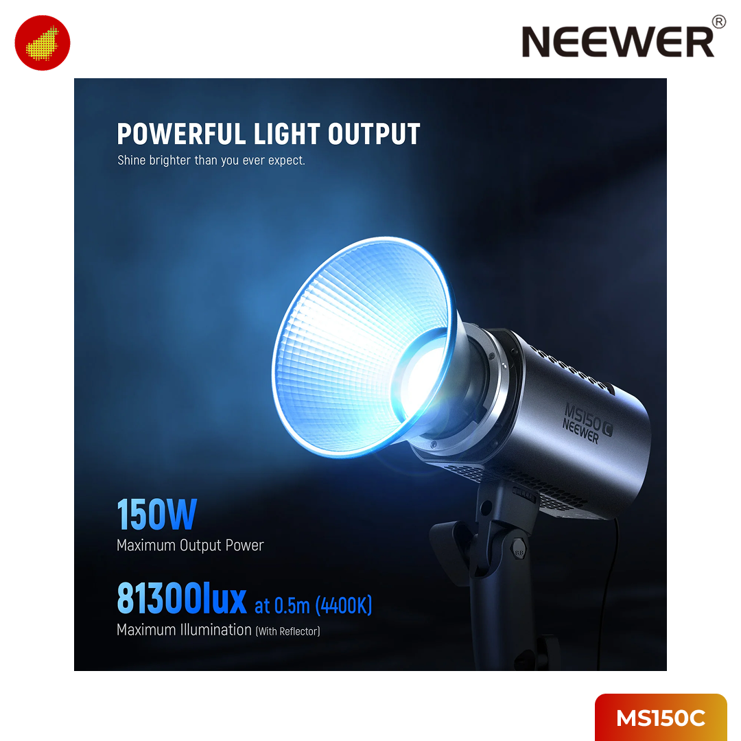 NEEWER MS150C adalah monolight COB LED RGB yang ringkas dan kuat, menawarkan output 150W dalam desain yang mudah digenggam dan portabel (≈1041g). Lampu ini menonjol dengan sistem RGBWW Light Mixing yang canggih, memungkinkan content creator untuk mengakses spektrum warna penuh selain pencahayaan Bi-Color. Ideal untuk berbagai produksi, MS150C dilengkapi teknologi PWM Dimming presisi, memastikan penyesuaian kecerahan yang halus dan akurat. Untuk menambah kreativitas, lampu ini menyediakan 6 Light Modes dengan Realistic Special Effects.