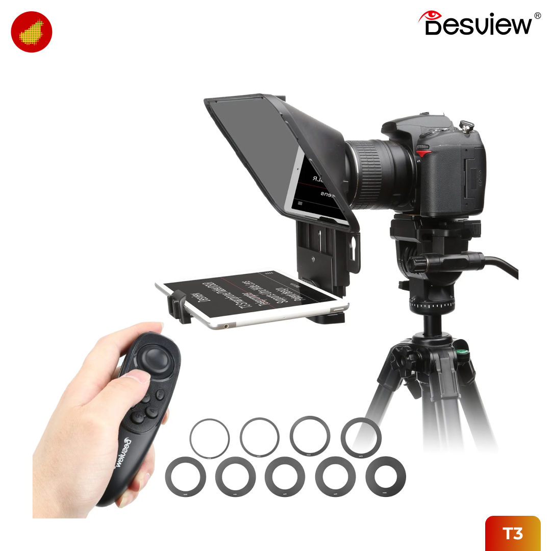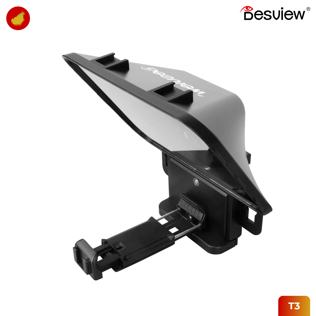 Desview T3 adalah solusi profesional bagi konten kreator, guru online, hingga streamer yang ingin tampil percaya diri di depan kamera tanpa perlu menghafal naskah. Dengan desain portabel yang mendukung penggunaan smartphone maupun tablet hingga ukuran 11 inci, alat ini memastikan tatapan mata Anda tetap fokus ke lensa sambil membaca teks dengan lancar. Fleksibilitasnya memungkinkan Anda melakukan syuting secara vertikal untuk kebutuhan TikTok/Reels maupun horizontal untuk konten YouTube dan wawancara dengan hasil yang terlihat lebih natural.