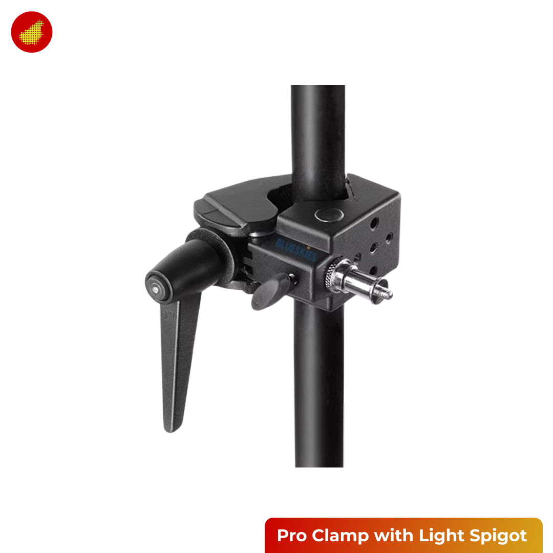 Pro Clamp with Light Spigot adalah solusi pemasangan lampu profesional yang dirancang khusus untuk penggunaan pada sistem Autopole atau permukaan silinder lainnya di studio. Dengan klem heavy-duty ini, Anda dapat memasang berbagai perlengkapan pencahayaan seperti lampu strobe, lamp head, hingga adaptor speedlight langsung ke tiang autopole tanpa membutuhkan tripod tambahan. Dilengkapi dengan mekanisme pengencang handle dan pelindung karet pada ujung jepitan, alat ini memastikan cengkeraman yang sangat kuat dan stabil tanpa merusak atau menggores permukaan tiang.