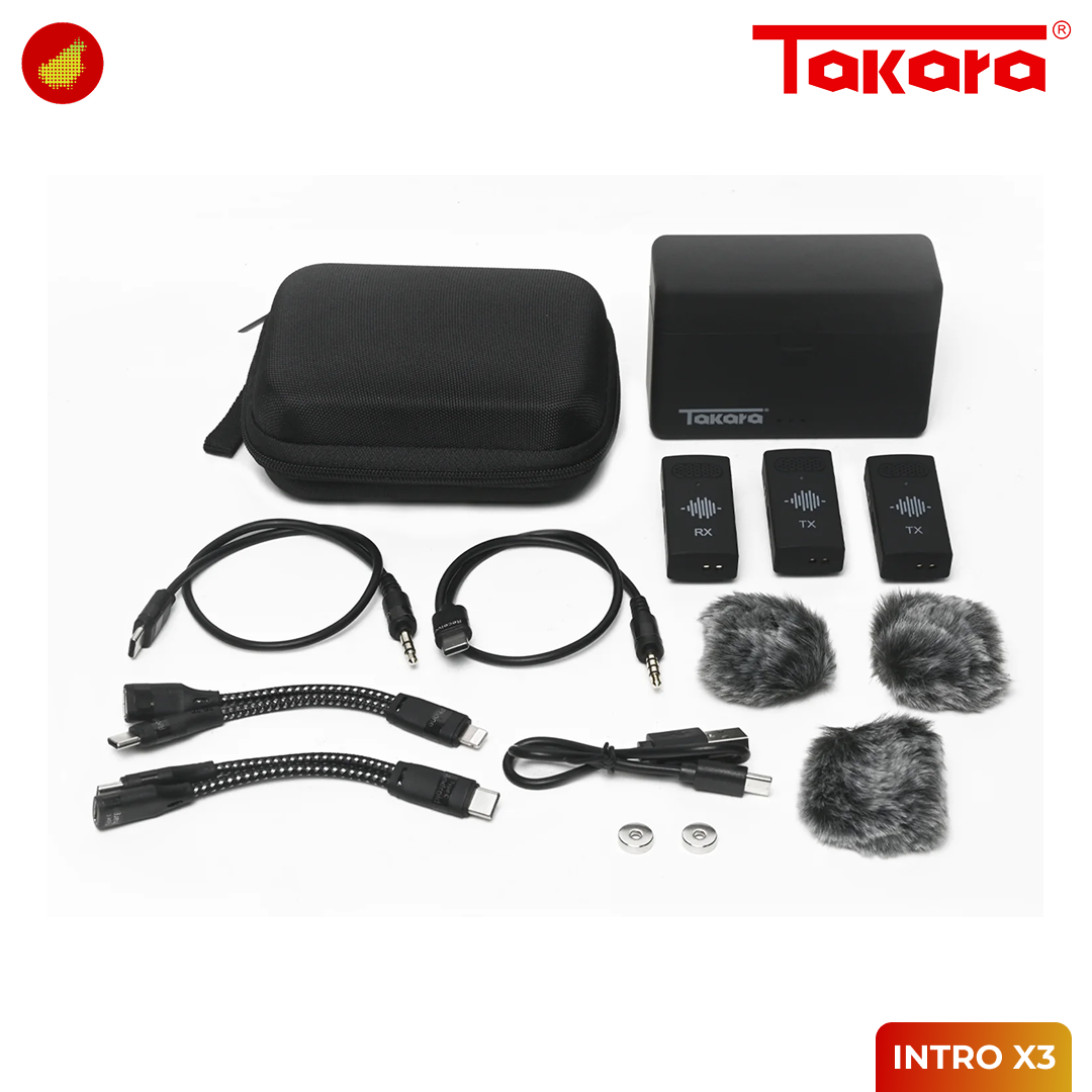 Bagi vlogger, pewawancara, atau content creator yang membutuhkan sistem mikrofon nirkabel lengkap dan serbaguna, Takara Intro X3 adalah solusi audio 3-in-1 yang canggih. Sistem ini beroperasi pada frekuensi digital 2.4GHz dan memiliki fitur unik: Receiver memiliki mic bawaan ketiga, memungkinkan Anda merekam hingga tiga orang sekaligus. Dengan desain ultra-light, sistem ini sangat mudah digunakan berkat fitur Plug & Play dan Auto Pairing, memungkinkan Anda langsung mulai merekam tanpa konfigurasi rumit.