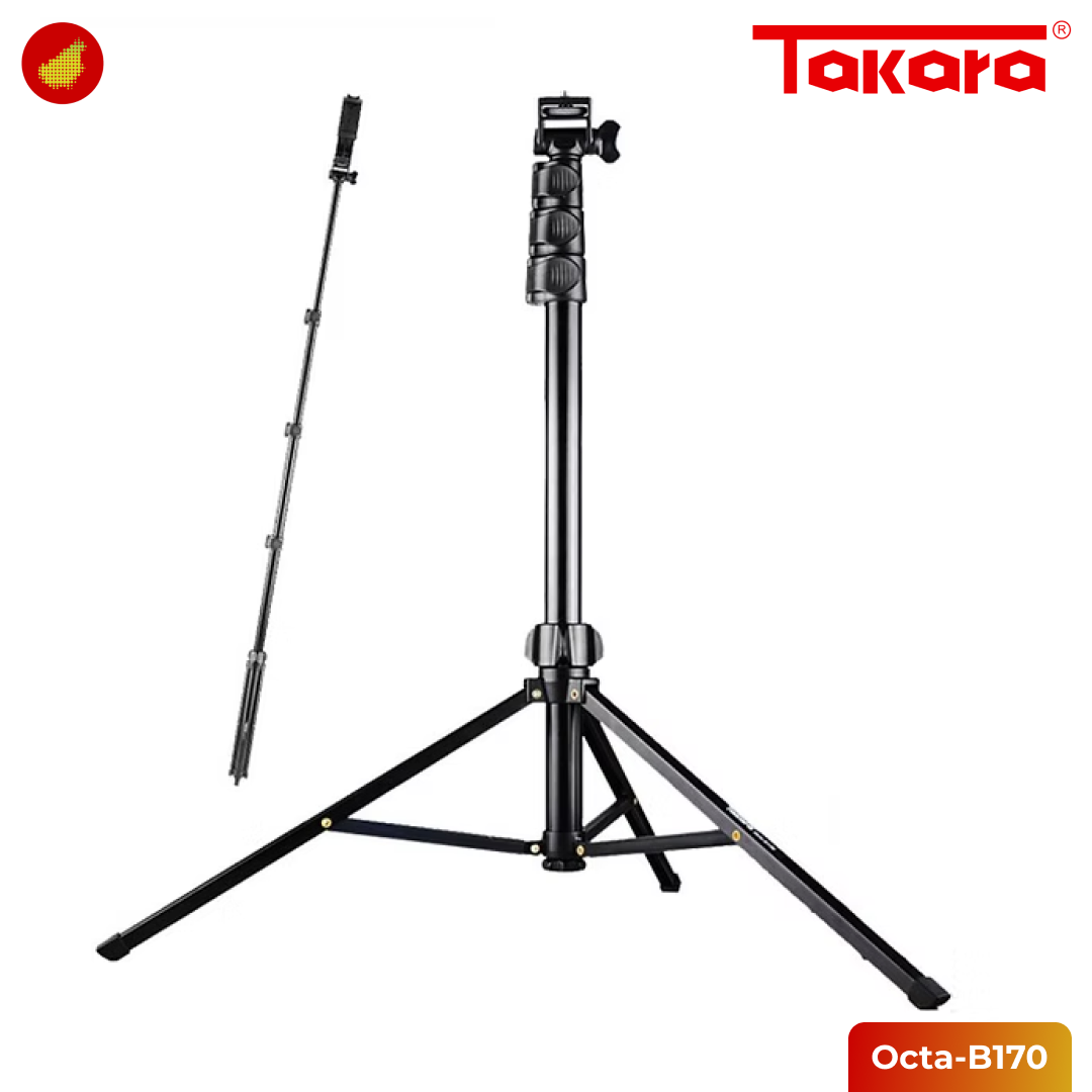 Bagi vlogger, live streamer, dan content creator yang mengutamakan portabilitas dan ketinggian, Takara OCTA-B170 adalah alat support multi-fungsi yang serbaguna. Dibuat dengan desain lightweight dan minimalis, tripod ini dapat berfungsi sebagai tripod mini, light stand, dan Selfie Stick, menjangkau tinggi maksimum hingga 170 cm—sangat ideal untuk mengambil angle yang tinggi. Tripod ini sangat ringkas karena dapat dilipat hingga hanya 510 mm, memudahkan penyimpanan di tas mana pun saat traveling.
