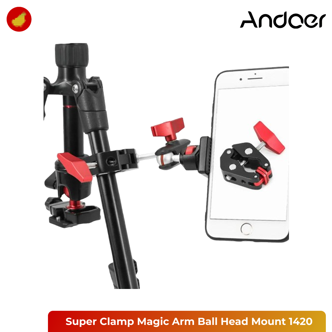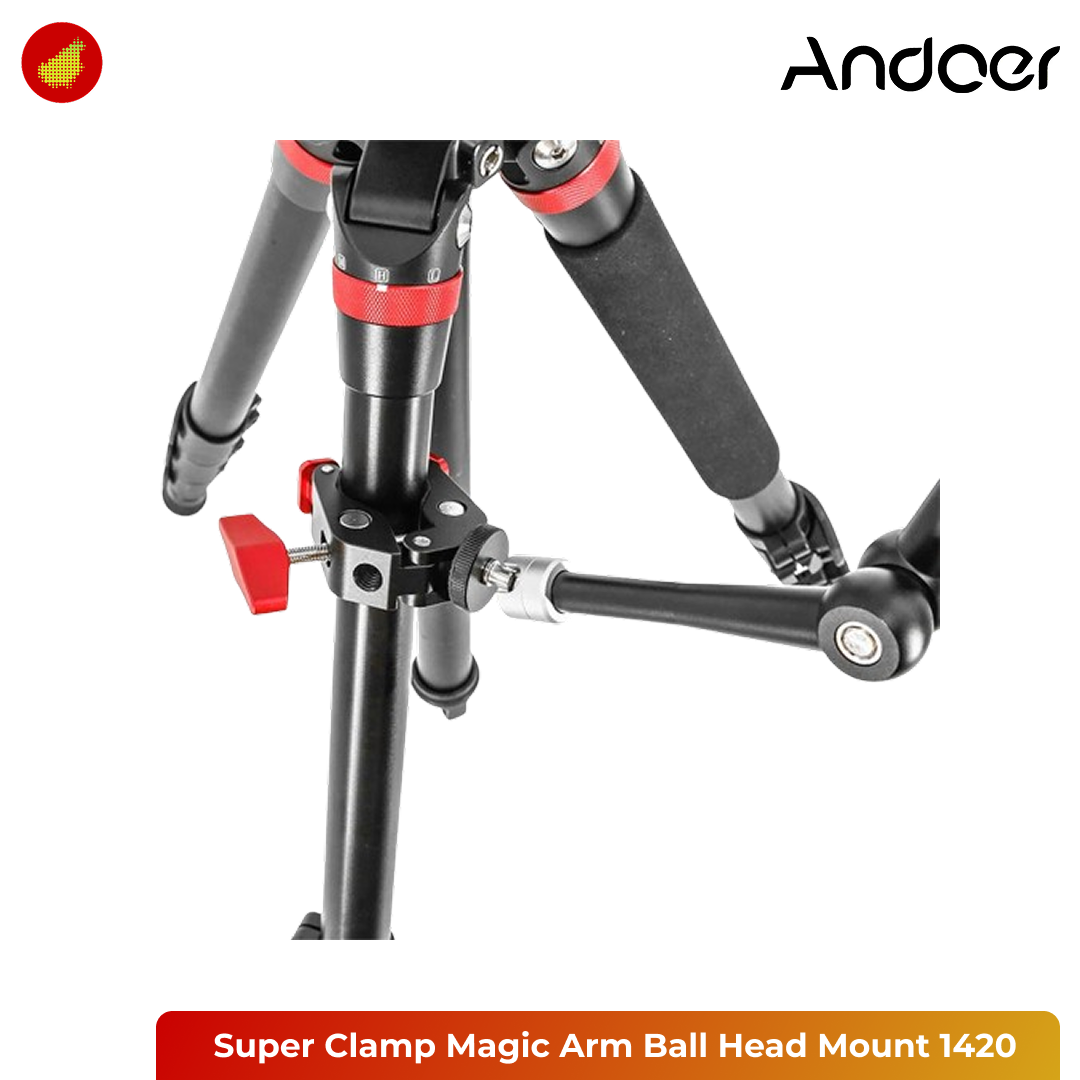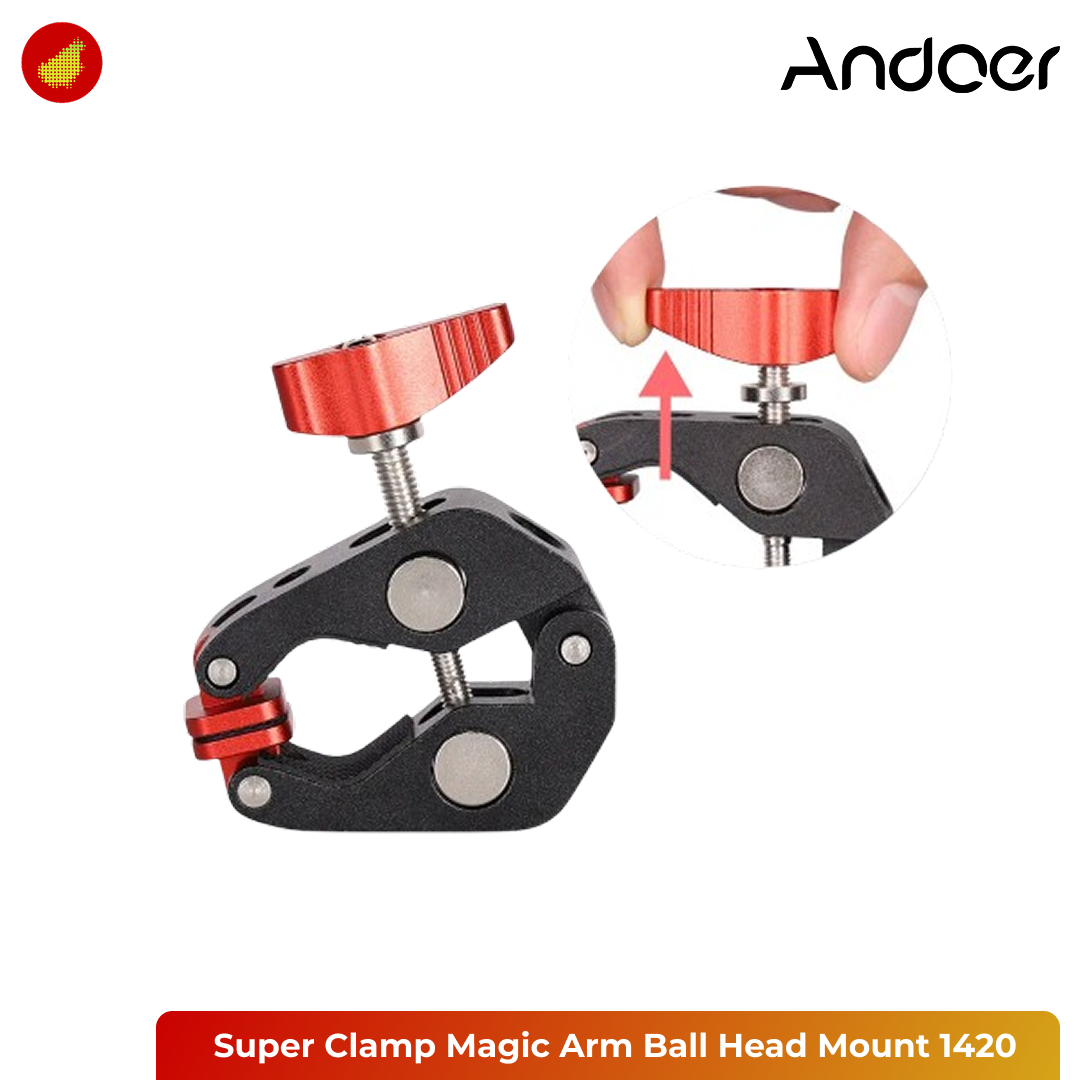 Andoer Super Clamp 1420 adalah solusi mounting serbaguna yang dirancang untuk memberikan fleksibilitas ekstra pada setup kamera Anda. Penjepit ini sangat andal untuk memasang berbagai aksesori fotografi seperti monitor tambahan, lampu LED, mikrofon, hingga ball head pada tiang tripod, meja, maupun pipa dengan diameter 13-30 mm. Dengan desain yang ringkas namun tangguh, clamp ini mampu mencengkeram dengan sangat kuat, memastikan perangkat tambahan Anda tetap stabil dan aman selama proses pengambilan gambar.