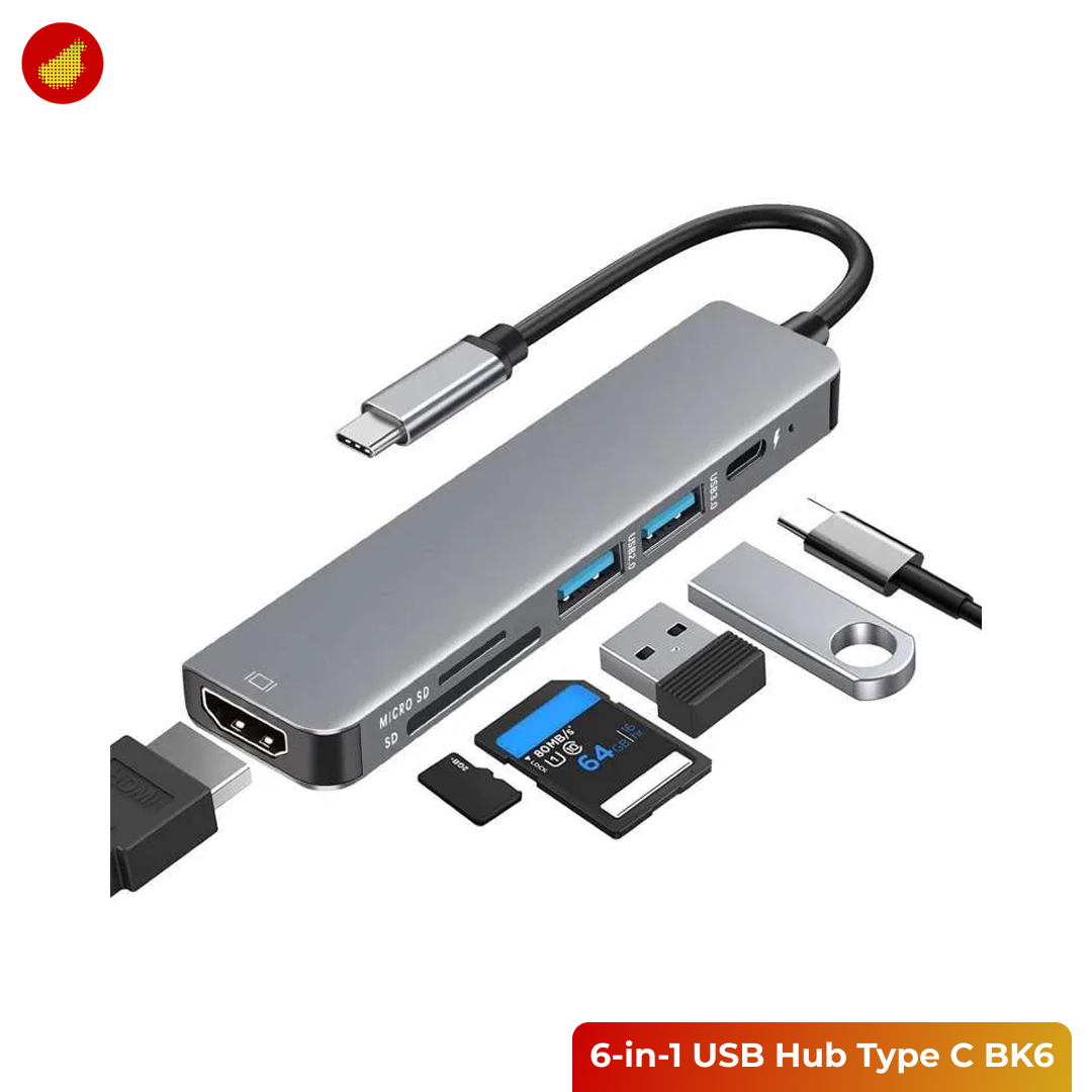 BAKEEY USB HUB Type C 6 in 1 (BK6) adalah adaptor multifungsi yang dirancang untuk memperluas konektivitas laptop atau perangkat USB-C Anda secara drastis. Hub ini dilengkapi dengan port USB Type C PD yang mendukung pengisian daya cepat hingga 100 Watt, memungkinkan Anda mengisi daya laptop sambil menggunakan semua fitur hub lainnya tanpa repot. Hub ini adalah solusi all-in-one yang efisien untuk mengatasi keterbatasan port pada perangkat modern.