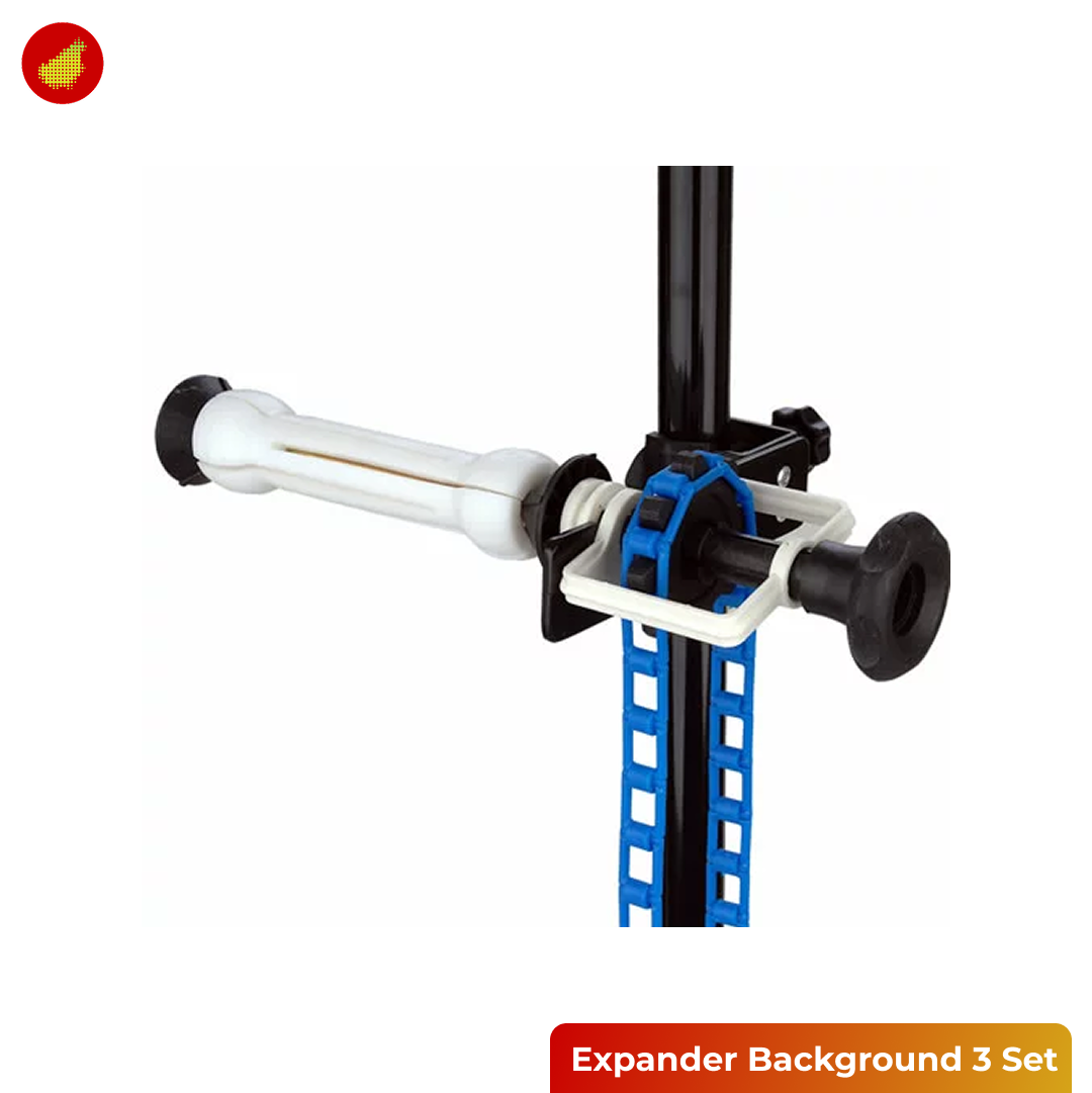 Sistem expander ini sangat fleksibel dalam instalasi karena dapat dipasang langsung pada dinding ruangan, langit-langit, atau bahkan dipasangkan pada light stand studio berkat adanya lubang khusus pada bagian hook. Dilengkapi dengan rantai plastik yang kuat dan pemberat agar gulungan tetap stabil dan tidak mudah meluncur turun sendiri. Dengan alat ini, studio Anda akan terlihat lebih rapi, terorganisir, dan siap digunakan untuk berbagai kebutuhan sesi foto produk, potret, hingga pembuatan konten video secara cepat.