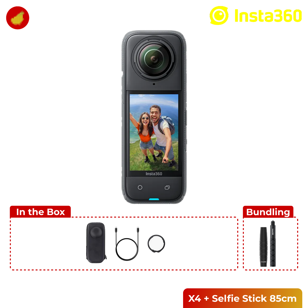 Insta360 X4 adalah kamera aksi 360 terbaru yang menetapkan standar baru dengan kemampuan merekam video hingga resolusi 8K30. Dengan sensor 1/2" dan didukung oleh chip AI 5nm yang revolusioner, X4 menawarkan kualitas gambar terbaik dari Insta360, termasuk bitrate 200 Mbps, framerate lebih tinggi (5.7K60fps dan slow-motion 4K100fps), dan Active HDR yang ditingkatkan untuk detail sorotan dan bayangan yang luar biasa. Kamera ini sangat intuitif karena keajaiban 360 memungkinkan Anda bidik dulu, atur kemudian (reframing) di aplikasi, didukung oleh efek Invisible Selfie Stick yang menghilangkan tongkat dari hasil rekaman.
