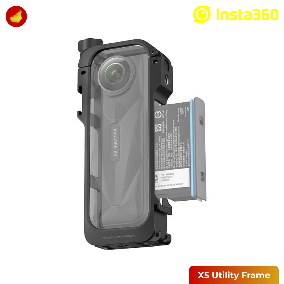 Insta360 X5 Utility Frame adalah frame pelindung full-metal yang dirancang untuk memberikan perlindungan menyeluruh (360 security) bagi kamera Insta360 X5 Anda tanpa mengorbankan kompatibilitas atau menambah beban. Dibangun dari paduan aluminium, frame ini 22\% lebih ringan daripada model sebelumnya, namun tetap mempertahankan daya tahan tinggi. Frame ini memiliki mekanisme penguncian sekrup yang andal untuk menjaga kamera tetap aman, serta dilengkapi lens cap khusus saat kamera tidak digunakan.